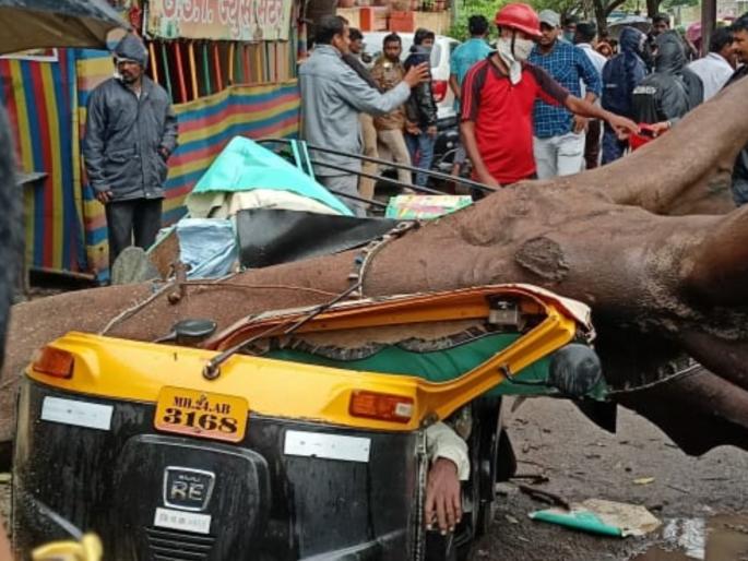 रिक्षावर झाड कोसळून झाला चक्काचूर; चालकाचा मृत्यू तर एकजण जखमी