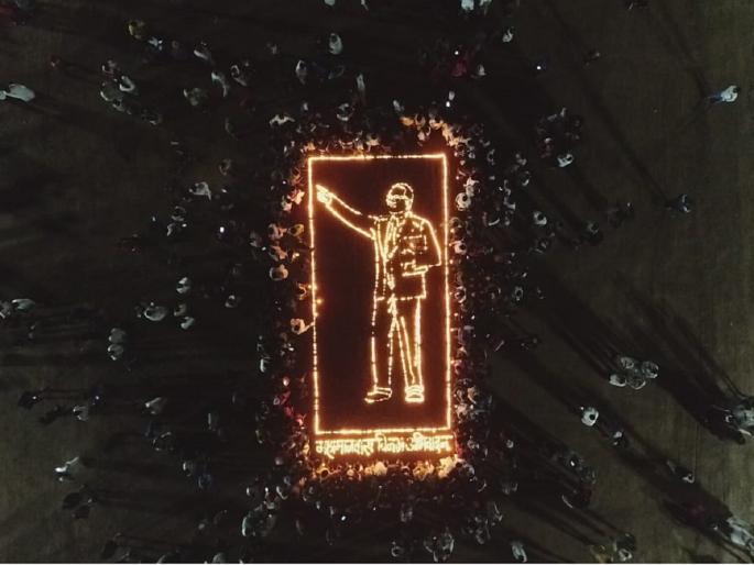 छायाचित्रकार बालाजी धायगुडे यांनी भन्ते पय्यानंद यांच्या मार्गदर्शनाखाली १५ बाय ४० फूट आकारावर साडेचार हजार दीप लावून बाबासाहेबांची प्रतिकृती तयार केली. सोमवारी सायंकाळी ६ वाजेपासून प्रतिकृती तयार करण्याचे काम सुरू होते. पावणेबारा वाजता काम पूर्ण झाले. यावेळी हजारो आंबेडकरप्रेमी नागरिकांनी पार्कवर येऊन दीपांनी साकारलेली प्रतिमा डोळ्यांत साठवली.