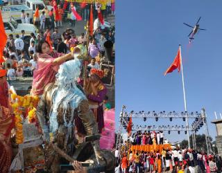 साताऱ्यात शिवजयंती सोहळा थाटात, शिवरायांच्या पुतळ्यावर हेलिकॉप्टरमधून पुष्पवृष्टी