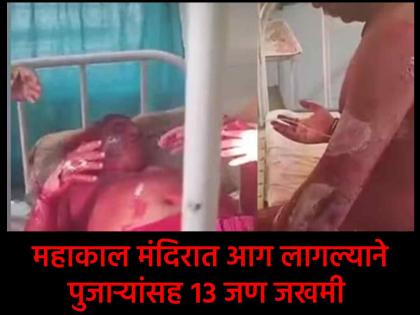 याबाबत सविस्तर वृत्त असे की, जगप्रसिद्ध ज्योतिर्लिंग श्री महाकालेश्वराच्या गर्भगृहात सोमवारी सकाळी भस्म आरती सुरू असताना आग लागली. यात पुजाऱ्यासह १३ जण भाजले. आरतीवेळी गुलाल उधळल्याने आग भडकली. त्यावेळी मंदिरात हजारो भाविक उपस्थित होते. सर्वजण महाकाल सोबत होळी साजरी करत होते. आरती करत असलेल्या पुजारी संजीव यांच्यावर कोणीतरी गुलाल फेकला असे जखमी सेवकाने सांगितले. गुलाल दिव्यावर पडला आणि गुलालात रसायन असल्याने आग लागली असावी असा अंदाज व्यक्त करण्यात येत आहे.