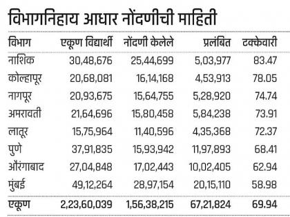 राज्यात फक्त 70 टक्के विद्यार्थ्यांची आधार नोंदणी; ठाणे, औरंगाबाद ५० टक्क्यांच्या आत, भंडारा प्रथम क्रमांकावर