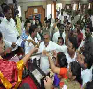 अकोल्यात महापौरांवर भिरकावली चप्पल आणि खिचडी