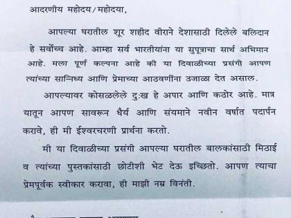 'आपल्या घरातील शूर शहीद वीराने देशासाठी दिलेलं बलिदान हे सर्वोच्च आहे. आम्हा सर्व भारतीयांना या सुपुत्राचा सार्थ अभिमान आहे. मला पूर्ण कल्पना आहे की, या दिवाळीच्या प्रसंगी आपण त्यांच्या सानिध्य आणि प्रेमाच्या आठवणींना उजाळा देत असाल.