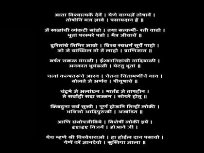‘आता विश्वात्मके देवे! येणे वाग्यज्ञे तोषावे! तोषोनि मज द्यावे, पसायदान हे!’ हे पसायदानाचे सूर आजही शांतता आणि प्रसन्नतेचा संदेश देतात...