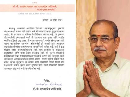 आप्पासाहेब यांना रविवारी महाराष्ट्र भूषण पुरस्कार देण्यात आला, या कार्यक्रमातील १३ जणांचा उष्माघाताने बळी गेला.
