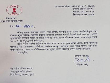IAS अधिकारी मनोज सौनिक यांची राज्याच्या मुख्य सचिवपदी नियुक्ती, सरकारने काढले आदेश