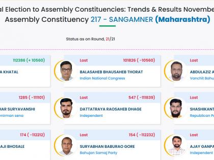 २०२४ च्या विधानसभा निवडणुकीत नगर जिल्ह्यातील संगमनेर विधानसभा मतदारसंघामध्ये काँग्रेसचे ज्येष्ठ नेते बाळासाहेब थोरात यांचा शिवसेना शिंदे गटाचे नवखे उमेदवार अमोल खताळ यांनी पराभव केला होता. या निवडणुकीत काँग्रेसच्या बाळासाहेब थोरात यांना १ लाख १ हजार ८२६ मतं मिळाली होती. तर अमोल खताळ यांना १ लाख १२ हजार ३८६ मतं मिळाली होती. अशा प्रकारे अमोल खताळ यांनी बाळासाहेब थोरात यांचा १० हजार ५६० मतांनी पराभव केला होता.