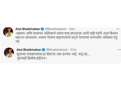 Atul Bhatkhalkar : "सूडाच्या राजकारणाचा हा शेवटचा अंक ठरणार, चालू द्या... तुमचाही हिशोब होईलच!"