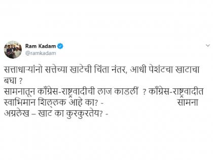 सामनाच्या अग्रलेखातून काँग्रेसला थेट तुमची खाट का कुरकुरतेय असा सवाल विचारण्यात आला. यावरूनचच भाजपाने महाविकास आघाडी सरकारला टोला लगावला आहे.