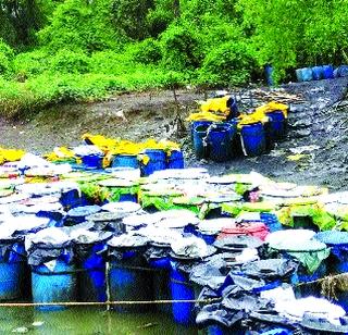 लोकमत न्यूज नेटवर्कठाणे : शीळ-डायघर पोलीस ठाण्याच्या हद्दीतील मोठी देसाई गावामध्ये गावठी दारूभट्टीच्या अड्ड्यावर गुन्हे अन्वेषण शाखेने गुरुवारी धाड टाकून तब्बल ९१ हजार लीटर रसायनासह १४ लाखांचा मुद्देमाल हस्तगत केला. ठाणे पोलिसांच्या गुन्हे अन्वेषण शाखेचे (घटक क्रमांक १) पोलीस निरीक्षक रणवीर बयेस आणि त्यांच्या सहकाऱ्यांनी गुरुवारी येथील अड्ड्यांवर धाड टाकली. पोलिसांची चाहूल लागताच आरोपी जंगलाच्या दिशेने पळून गेले. गावठी दारू तयार करण्याचे साहित्य पोलिसांनी घटनास्थळावरून जप्त केले. प्रत्येकी २०० लीटर क्षमतेचे ६०० प्लास्टिकचे ड्रम, प्रत्येक ड्रममध्ये सुमारे १५० लीटर याप्रमाणे एकूण ९१ हजार ५०० लीटर नवसागर, गूळमिश्रित कच्चे रसायन पोलिसांनी हस्तगत केले. याशिवाय, प्रत्येकी ४० लीटर याप्रमाणे १६०० लीटर तयार गावठी दारूने भरलेले ४० प्लास्टिक कॅन, प्रत्येकी ५०० लीटर क्षमतेचे ६ पायांचे ढोल, अॅल्युमिनिअमचे २ सतेले, २ लाकडी चाटू असा एकूण १४ लाख १४ हजार ५०० रुपयांचा मुद्देमाल पोलिसांनी हस्तगत केला. पळून गेलेल्या आरोपींबाबत पोलिसांनी माहिती घेतली असता त्यांची नावे मुकुंद केणी, विक्रम केणी, रूपेश केशव म्हात्रे, पंढरी म्हात्रे, नितेश म्हात्रे आणि राकेश बळीराम म्हात्रे अशी असल्याचे समजले.