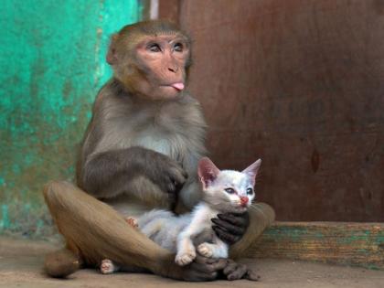मांजरीचा माकडिणीला लागला लळा; पुरूषांसोबत जडली मैत्री तर महिलांशी वैर