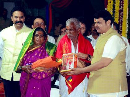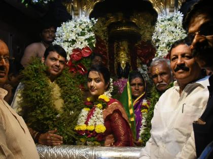 विठ्ठलाची पूजा झाल्यानंतर मुख्यमंत्री आणि वारकरी चव्हाण दांपत्याचे विठ्ठल मंदिराच्या मागिल बाजूला असलेल्या रुक्मिणी मातेच्या मंदिरात पूजा करण्यासाठी आगमन झाले. यावेळी रुक्मिणी मातेला दुग्धाभिषेक घालून चंदनाचा लेप लावत वस्त्रे परिधान केल्यानंतर मुख्यमंत्र्यांच्या पत्नी आणि चव्हाण यांच्या पत्नीने ओटी भरली. यानंतर एका कार्यक्रमामध्ये मुख्यमंत्र्यांच्या हस्ते विठ्ठल चव्हाण दांपत्याला चांदीची विठ्ठल रखुमाईची मूर्ती देऊन सत्कार करण्यात आला.