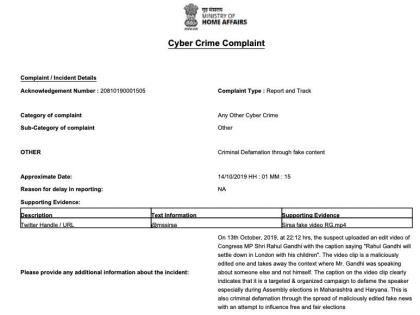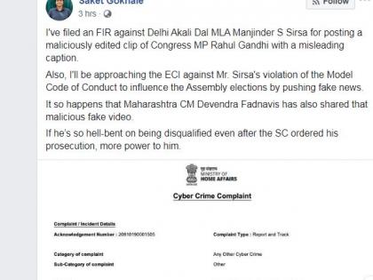 आमदार सिरसा यांनी आपल्या ट्विटर अकाऊंटवरुन 13 ऑक्टोबर रोजी राहुल गांधींचा एक फेक व्हिडीओ शेअर केला आहे. मात्र, हा व्हिडिओ मॉर्फ करुन फेक आणि विकृत उद्देशातून बनविण्यात आल्याचा आरोप साकेत यांनी आपल्या तक्रारीत केला आहे. विशेष म्हणजे मुख्यमंत्री देवेंद्र फडणवीस यांच्या अधिकृत फेसबुक पेजवरुनही हा व्हिडीओ शेअर करण्यात आला आहे. महाराष्ट्र आणि हरयाणा येथील विधानसभा निवडणुकांच्या प्रचारासाठी या व्हिडीओचा गैरवापर करण्यात येत आहे. त्यामुळे, हा आदर्श आचारसंहितेचा भंग असून याबाबत योग्य ती कारवाई करण्याची मागणी निवडणूक आयोगाकडे करणार असल्याचे साकेत यांनी म्हटले आहे.