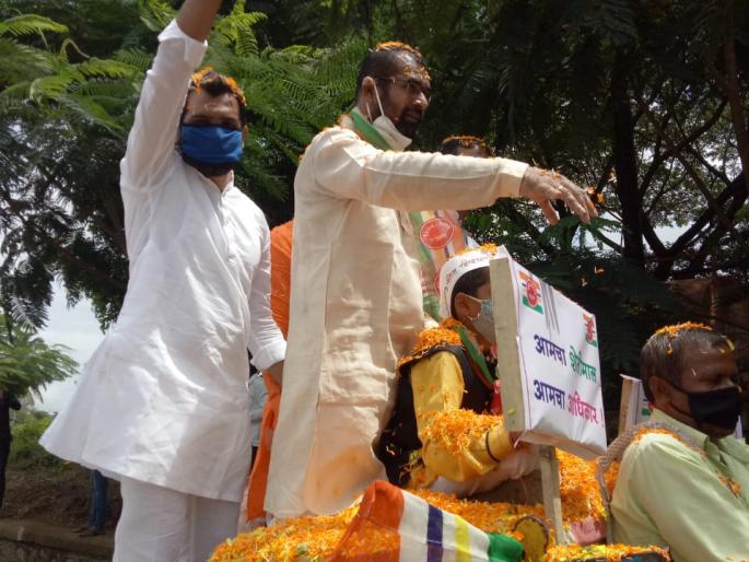 पुणे : केंद्र सरकारने मंजूर केलेल्या विधेयकामुळे शेतकऱ्यांना खऱ्या अर्थाने स्वातंत्र्य मिळाले आहे. मात्र काही ऐतखाऊ बांडगुळे याला विरोध करत आहेत. काँग्रेस आणि राष्ट्रवादी काँग्रेस या पक्षांनी विरोध केला कारण त्यांची संस्कृतीच मुळात लुटारु वृत्तीची आहे. असा आरोप रयत क्रांती संघटनेचे नेते व माजी मंत्री सदाभाऊ खोत यांनी केला. तालुका हवेली, सोरतापवाडी गावात, केंद्र सरकारने मंजूर केलेल्या कृषी विधेयकाचे गुढी उभारुन स्वागत करण्यात आले. फुलांची उधळण करत बैल गाडीतुन बळीराजाची मिरवणुक काढण्यात आली. त्यावेळी माजी मंत्री खोत बोलत होते. यावेळी माजी मंत्री बाळा भेगडे, गणेश भेगडे , भानुदास शिंदे, प्रदीप कंद, सुदर्शन चौधरी, प्रदीप कंद, आदी उपस्थित होते. माजी मंत्री खोत म्हणाले की, कृषी सुधारणा विधेयक मंजूर झाल्याने इडापीडा टळून बळीचे राज्य येणार आहे. ही मागणी अनेक वर्षांपासून स्व. शेतकरी नेते शरद जोशी करीत होते. या मागणीला यश आले आहे. कसायांच्या हातात शेतकऱ्यांची सुटका झाली आहे. शेतकऱ्यांना आता मुक्तपणे शेतमाल विकता येणार आहे. शेतकऱ्याला त्याचा माल मार्केट आवाराच्या बाहेर विकण्याचा अधिकार मिळाला आहे. विदेशी गुंतवणूक होणार आहे. मार्केट कमिट्या बंद होणार नाहीत. तसेच मार्केट कमिटीमध्येच शेतमाल विकण्यासाठी जावे लागत होते. आता मात्र शेतकऱ्यांना मालाची मार्केट आवाराच्या बाहेर विक्री करता येणार आहे. पूर्वी शेतमाल साठवण्यासाठी बंदी होती त्यावर कारवाई होत असे. त्यामुळे व्यापाऱ्याचा फायदा होत होता. आता यात बदल होऊन शेतमालाला चढा भाव मिळेल.