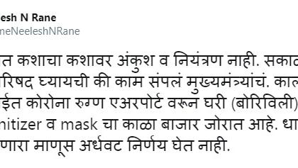 तर याचवेळी त्यांनी आरोग्यमंत्री राजेश टोपे यांच्यावर सुद्धा टीका केली आहे. आरोग्यमंत्री आणि मुख्यमंत्री कसली वाट बघत आहात?.. हे सरकार रोज कोरोना रुग्ण किती वाढतायत ह्याची माहिती देण्यासाठीच आहे काय?… विचार करण्यात आणि बोलण्यात वेळ जितका घालवाल तितका त्रास लोकांना भोगावा लागेल, असा आरोपही निलेश राणेंनी केला आहे.