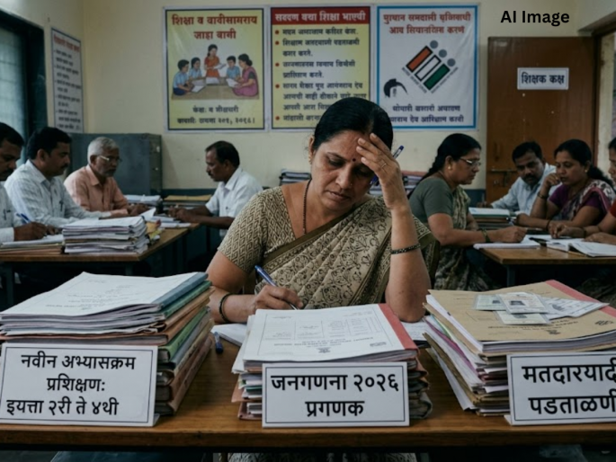 Web Summary : महाराष्ट्र के प्राथमिक शिक्षक पाठ्यक्रम प्रशिक्षण, जनगणना और मतदाता सूची सत्यापन को एक साथ संभालने के भारी दबाव का सामना कर रहे हैं। इस तिहरी जिम्मेदारी से प्रभावी योजना और शिक्षकों की भलाई के बारे में चिंताएं बढ़ गई हैं।