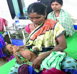 नाशिक- मृत्यूशी झुंज देणाऱ्या कुपोषित राहुलवर आज संध्याकाळपासून नाशिकच्या सिव्हील रुग्णालयातील बालरोगतज्ज्ञ डॉ. कुंडेकर हे उपचार करीत आहेत. तो बेशुद्ध असून त्याला रक्त देण्यात येते आहे. चिंताजनक स्थिती असल्यामुळे तो सध्या आयसीयूमध्ये आहे. त्याच्या आईने पलायन केल्याने तो सकाळी येथे दाखल होण्याऐवजी सायंकाळी दाखल झाला.अठरा विश्व दारिद्रय, पोटाला अन्न नाही अशा स्थितीमध्ये उपचार काय करणार? नाशिकच्या रुग्णालयात बाळाला उपचारासाठी नेऊन त्याच्या सोबत थांबायचे की, रोजची रोजी रोटी कमवून उरलेल्यांचे पोट भरायचे या विवंचनेत सापडलेल्या मातेने आपला पुत्र राहुल याला मृत्यूच्या दाढेतून सोडविण्यासाठी नाशिकच्या सिव्हील हॉस्पिटलमध्ये नेण्यापेक्षा त्याला सोडून पळ काढणे पसंत केले. यामुळे शेवटी त्याच्या आजीचा शोध घेऊन तिच्या समवेत दोन डॉक्टर, आशा कार्यकर्ती, नर्ससह राहुलला दुपारी ४ वाजता रुग्णवाहिकेतून नाशिकला नेले. त्याच्या आईचा शोध पोलीस घेत आहेत. वास्तविक राहुलला आज सकाळीच नाशिकला न्यायचे होते परंतु त्याच्या आईने पळ काढला. व सोबत कुटुंबातील कुणी सज्ञान व्यक्ती असल्याशिवाय या कुपोषित बाळाला आम्ही नाशिकला पाठविण्याची कारवाई करू शकत नाही उद्या काही बरेवाईट झाले तर त्याची जबाबदारी आमच्यावर येईल असे डॉक्टरांनी सांगितले. मग त्याच्या आप्ताचा शोध घेतला असता त्याची आजी हाती लागली.तिला त्याच्या सोबत जाण्यास राजी केले गेले. त्यामुळे राहुलला उपचार मिळण्यास विलंब झाला.एकाची काळजी करीत बसलो तर बाकिच्यांवरही तशीच वेळ येईल त्यामुळे मृत्यूच्या दाढेत सापडलेल्या आपल्या बाळाकडे दुर्लक्ष करून काळजावर दगड ठेवून इतरांचे पोट भरण्यासाठी मोलमजूरी करण्याला राहुलच्या मातेने महत्व दिले. नाशिकला गेलो तरी आपल्या खाण्यापिण्याचे काय? इतरांच्या भुकेचे काय? त्यामुळे तिने पळ काढला, असे समजते. यामुळेच जेव्हा अंगणवाडी कर्मचारी किरकिरे यांनी तिला दोनवेळा राहुलला रुग्णालयात दाखल करण्यास सांगितले तेव्हाही तिने त्याकडे दुर्लक्ष केले होते. >आईचा शोध सुरूअखेर आज संध्याकाळपर्यंत राहुलच्या आईचा तपास लागला नाही. आईचा तपास न लागल्याने डॉक्टरांनी अखेर जव्हार पोलीस ठाण्यातील पोलिसांना बोलावून तिचा शोध घेण्यास पोलिसांना सांगितले आहे. जव्हारच्या ग्रामीण रुग्णालयात साध्या श्रेणीतील तीव्र बालके- १८ व अतितीव्र बालके- ३ अशी एकूण- २१ बालके दाखल असून त्यांच्यावर अतिदक्षता विभागात उपचार सुरु आहेत. त्यांची संख्या रोज वाढते आहे. >१२९६ पदे रिक्त कुपोषण वाढलेपालघर : ग्रामविकास आणि महिला बालकल्याण मंत्री पंकजा मुंडे यांच्या ग्रामविकास खात्या अंतर्गत येणाऱ्या पालघर जिल्हा परिषदेची 