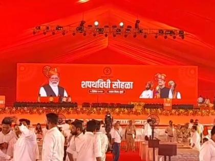 Devendra Fadnavis, Eknath Shind, Ajit pawar Oath Maharashtra CM Azad Maidan: या शपथविधीला शरद पवार, उद्धव ठाकरे, राज ठाकरे जरी येणार नसले तरी राज्यभरातून कार्यकर्ते जाणार आहे. महनीय व्यक्तींना निमंत्रण पत्रिकाही पोहोचल्या आहेत. या शपथविधी सोहळ्याच्या मंडपाची पहिली झलक समोर आली आहे.