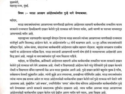 भाजपचे आमदार नितेश राणे यांनी नाणार आंदोलकांवरील गुन्हेही मागे घेण्याची मागणी केली होती. यावर ठाकरेंनी सकारात्मक पाऊल उचलले होते. आता धनंजय मुंडेंनीही मुख्यमंत्र्यांना पत्र लिहीत मराठा आरक्षण आंदोलकांवरील गुन्हे मागे घेण्याची मागणी केली आहे.