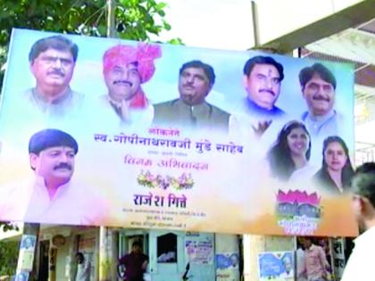 गोपीनाथ मुंडे यांच्या जयंतीनिमित्त परळीत स्वाभिमान दिन साजरा करण्यात येणार आहे. त्यासाठी जय्यत तयारी करण्यात आली असून उद्याच्या कार्यक्रमानिमित्त लोकनेत्याला अभिवादन करणारे हजारो बॅनर्स शहरात लावण्यात आले आहेत. मात्र यातील एकाही बॅनरवर भाजपचे चिन्ह नसल्याचे पाहायला मिळत होते. तसेच यावर कोणत्याही भाजप नेत्यांचे फोटो नसल्याचे सुद्धा पाहायला मिळत होते. यामुळे तर्कवितर्क काढले जात होते.