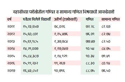 दरम्यान, मागील सात वर्षांची गणित विषयातील उत्तीर्ण विद्यार्थ्यांची टक्केवारी पाहिल्यास ती सामान्य गणितापेक्षा अधिक दिसते. गणित विषयाचा निकालही वाढत जाऊन मागील चार वर्षे ८८ ते ९० टक्क्यांमध्ये स्थिर राहिला आहे. तुलनेने सामान्य गणिताचा निकाल आणि विद्यार्थी संख्याही सातत्याने घटत चालल्याचे आकडेवारीवरून स्पष्ट होते.