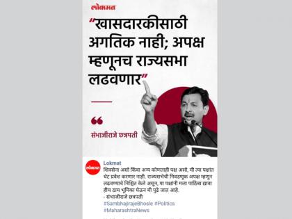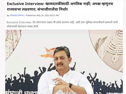 संभाजीराजेंशी थेट बातचीत करून 'लोकमत'ने २४ मे रोजी एक्स्लुझिव्ह बातमी केली होती. "खासदारकीसाठी अगतिक नाही; अपक्ष म्हणूनच राज्यसभा लढवणार; संभाजीराजेंचा निर्धार" असं त्या बातमीचं शीर्षक होतं.