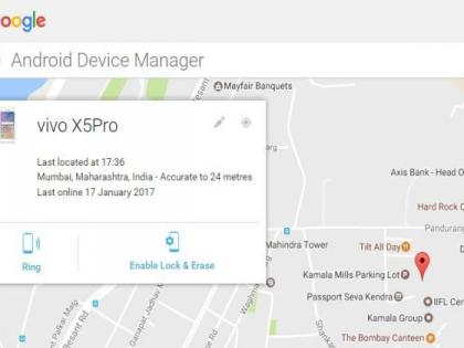 तिसरी स्टेप: या मॅपमध्ये तुम्हाला तुमच्या फोनची लोकेशन दिसेल. गुगल तुमच्या स्मार्टफोनच्या लोकेशनला ट्रेस करेल आणि तुम्हाला तो कुठे आहे त्याची माहिती दाखवेल. तुम्ही कुठून प्रवास करून आला असाल आणि तुम्ही फोन नक्की कुठे हरवलाय त्यासाठी हे फिचर खुपच उपयुक्त आहे. तुम्हाला फोनची लोकेशन कळाल्यावर त्याला योग्य स्थळी जाऊन तुम्ही शोधू शकाल.