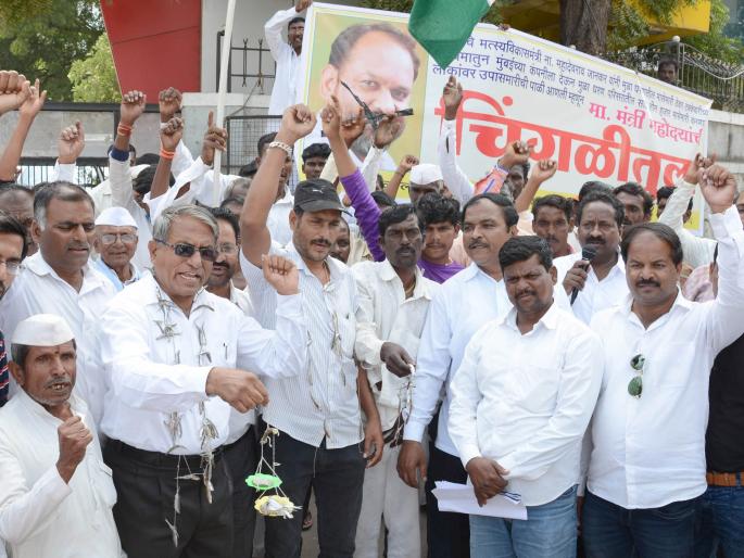 अहमदनगर : राहुरी येथील मुळा धरणात मासेमारी करणा-या स्थानिक आदिवासी जमातीतील व्यावसायिकांना डावलून मुळा धरणातील मत्स्यमारीचा पाच वर्षाचा ठेका नवी मुंबई येथील मे. ब्रिज फिशरिज या कंपनीला दिल्याच्या निषेधार्थ पिपल्स हेल्पलाईनच्या वतीने जिल्हाधिकारी कार्यालयासमोर राज्याचे मत्स्यविकास मंत्री महादेव जानकर यांची चिंगळीतुला करण्याचे अनोखे आंदोलन करण्यात आले. मुळा धरणात मासेमारी करणा-या व्यावसायिकांनी चिंगळी माशांची माळा गळ्यात घालून जानकर यांचा निषेध केला.
