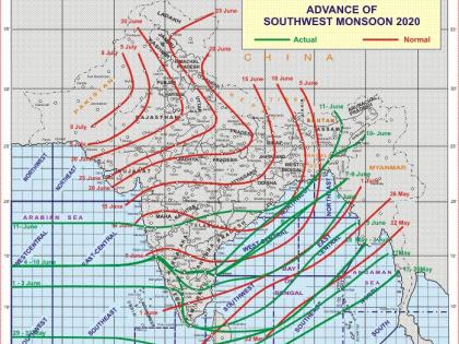 बंगालच्या उपसागरातील अनुकूल हवामानामुळे मान्सूनचा पुढील प्रवास वेगाने सुरू असून, बुधवारी तामिळनाडूच्या उर्वरित भागात, पश्चिम मध्य व उत्तर बंगालच्या आणखी काही भागात, त्रिपुरा व मिझोरामच्या काही भागात दाखल झाल्याची घोषणा भारतीय हवामानशास्त्र विभागाने केली. कमी दाबाच्या क्षेत्रामुळे आंध्र प्रदेश, तेलंगणा, ओरिसा, छत्तीसगढ, मध्यप्रदेश आणि महाराष्ट्रात ढगाळ वातावरण निर्माण होत आहे. २४ तासांत दक्षिण कोकण गोवा आणि दक्षिण मध्य महाराष्ट्रात दाखल होणारा मान्सून, त्यापुढील दोन ते तीन दिवसांत म्हणजे १२ ते १३ जूनच्या आसपास मुंबईत दाखल होईल, असाही अंदाज वर्तविण्यात आला आहे. ढगाळ वातावरण आणि काही ठिकाणी बरसणाऱ्या मान्सूनपूर्व सरींमुळे मध्य महाराष्ट्र आणि विदर्भात कमाल तापमान घटले आहे. गेल्या २४ तासांत चंद्रपूर येथे राज्यातील सर्वाधिक ४१.५ अंश सेल्शिअस तापमानाची नोंद झाली.