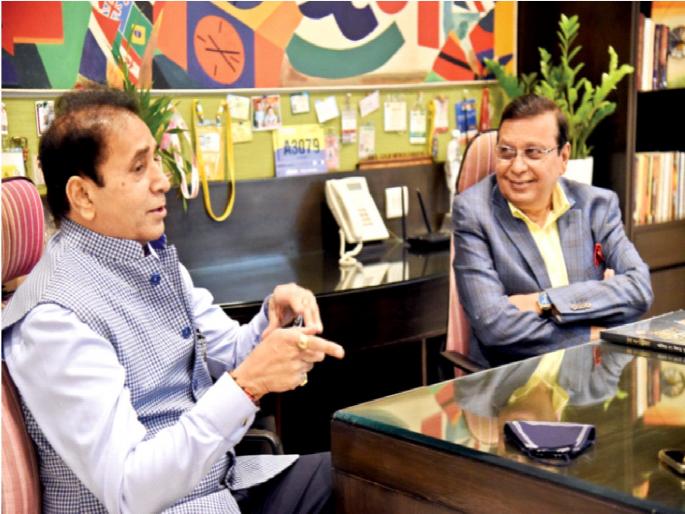 गृहमंत्री देशमुख यांनी शुक्रवारी ‘लोकमत भवन’ला भेट दिली. यावेळी लोकमतचे एडिटर इन चीफ राजेंद्र दर्डा यांनी त्यांचे स्वागत केले.कोरोना काळात राज्यातील पोलिसांनी जीवाची पर्वा न करता अतुल्य कामगिरी बजावली. यावर गृह विभागाने ‘अतुल्य हिंमत’ हे कॉफी टेबल बुक काढले आहे. त्याची प्रतही त्यांनी राजेंद्र दर्डा यांना भेट दिली.
