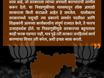 दवीधर व शिक्षक निवडणुकीत महाविकास आघाडीला महाराष्ट्रातील जनतेचा कौल नक्की कुणाच्या बाजूने आहे याची पूर्णपणे जाणीव होईल..