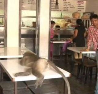 ऑनलाइन लोकमतपुणे, दि. 20 - गेल्या काही दिवसांपासून उष्म्यात कमालीची वाढ नोंदवली गेली आहे. उन्हा-तान्हातून फिरल्यास अंगाची लाही लाही झाल्याशिवाय राहत नाही. अनेकदा या कडाक्याच्या उन्हात जीव तहानेने व्याकूळ होतो. मात्र फक्त माणसांचाच नव्हे, तर पाणिमात्रांचाही या कडक उष्म्यानं जीव कासावीस होतोय. अनेक पाणीमित्र पशू-पक्ष्यांसाठी घराबाहेर पाण्याचं भांडं ठेवतात. जेणेकरून मुक्या पशू-पक्ष्यांची तहान भागू शकेल. अशातच उन्हाच्या काहिलीनं त्रस्त झालेलं एक माकड चक्क आईस्क्रीम पार्लरमध्ये प्रवेशकर्ते झाले. मग काय माकड आलं म्हटल्यावर आईस्क्रीम पार्लरमधल्या कामगारांचीही तारांबळ उडाली. त्यानंतर कामगारांनी त्या माकडाला एक आईस्क्रीमही खाण्यासाठी दिलं. आईस्क्रीमचा आस्वाद घेतल्यानंतर माकड तिथेच फॅनच्या थंड गारव्यात टेबलावरच थोडं पहुडलं.थोड्या वेळानं उठून ते माकड पुन्हा जंगलात निघून गेलं. या सर्व प्रकरणामुळे आईस्क्रीम पार्लरमधील कर्मचा-यांनाही काहीचा वेगळा अनुभव घेता आला. अनेकांनी त्या माकडाला कॅमे-यामध्ये कैद केलं.