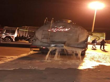 - वरवंड टोलनाक्यावर टँकरमधील दूध ओतलं