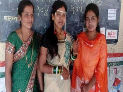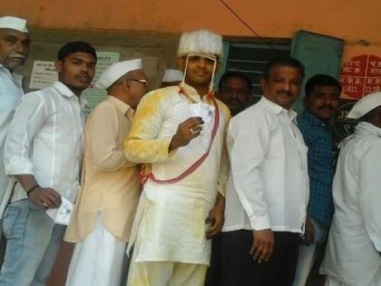 सायगाव येथील बीएसएफ जवान गोरखनाथ दिलीप जाधव यांनी बोहल्यावर चढण्यापूर्वी जिल्हा परिषद व पंचायत समितीसाठी केले मतदान.