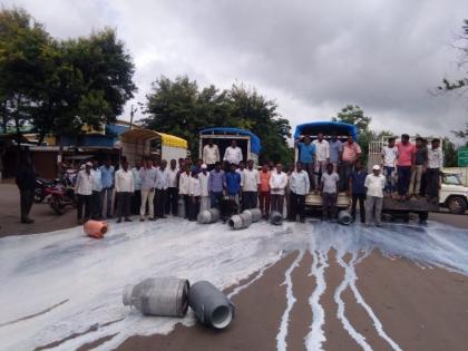 - सांगली : आरवडे येथे दूध उत्पादकांनी दूध वाहतूक करणारी गाडी अडवून 1500 लिटर दूध ओतून टाकले.