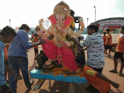Mumbai: #Visuals of Ganesha idol immersion from Girgaum Chowpatty. #GaneshChaturthipic.twitter.com/6I0YytdQco