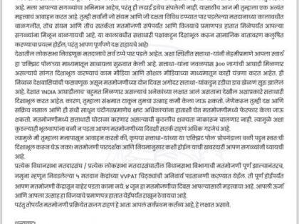त्यात जयंत पाटील पुढे म्हणाले की, देशात INDIA आघाडीलाच बहुमत मिळणार असल्याचं अनेकांच्या लक्षात आलं असतानादेखील अशाप्रकारे सत्ताधारी दिशाभूल करत आहेत. कारण, तुम्हाला संभ्रमात टाकून तुमचा उत्साह कमी केला जाऊ शकतो. जेणेकरून तुम्ही दक्ष आणि सक्रिय नसाल आणि ही संधी साधून चंदीगढप्रमाणेच भ्रष्ट अधिकायांना हाताशी घेत मतमोजणीमध्ये फेरफार केला जाऊ शकतो. मतमोजणीमध्ये सत्ताधारी घोटाळा करणार असल्याची कुठलीच शक्यता नाकारून चालणार नाही. त्यामुळे अशा कुठल्याही भूलथापांना वळी न पडता आपण मतमोजणीच्या दिवशी सतर्क राहणं अधिक गरजेचं आहे, असे जयंत पाटील म्हणाले.