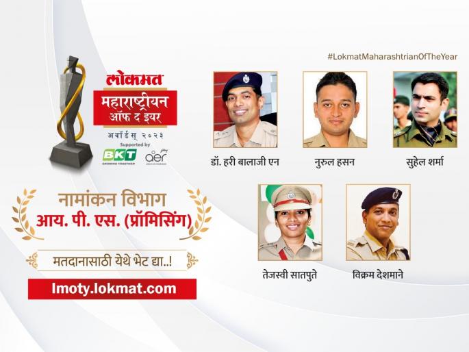 लोकसेवा/समाजसेवा, आयएएस, आयपीएस, राजकारण, शिक्षण, क्रीडा, कृषी, उद्योग/व्यवसाय, वैद्यकीय अशा क्षेत्रांमध्ये आपल्या उल्लेखनीय कामगिरीने जगभरात महाराष्ट्राचं वेगळं स्थान निर्माण करणाऱ्या गुणवंतांना दरवर्षी 'लोकमत महाराष्ट्रीयन ऑफ द इयर' पुरस्काराने गौरवण्यात येतं. 'लोकमत महाराष्ट्रीयन ऑफ द इयर' पुरस्कारासाठीची नामांकनं नुकतीच जाहीर करण्यात आली आहेत. आय पी एस (प्रॉमिसिंग) या श्रेणीत पाच जणांना नामांकन मिळालं आहे. त्यांच्याबद्दलची माहिती आणि त्यांना मत देण्यासाठीची लिंक खाली दिली आहे.