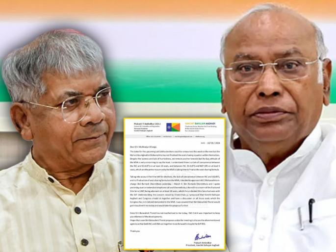 मुंबई - लोकसभा निवडणुका कुठल्याही क्षणी लागू शकतात अशात अद्यापही महाविकास आघाडीतील जागावाटपाचा तिढा सुटलेला नाही. मविआत कोण किती जागा लढवणार हे अद्याप स्पष्ट नाही. त्यामुळे मविआतील जागावाटपावरून वाद पाहता वंचित बहुजन आघाडीचे नेते प्रकाश आंबेडकर यांनी काँग्रेस अध्यक्ष मल्लिकार्जुन खरगे यांना पत्र लिहून नवी ऑफर दिली आहे.