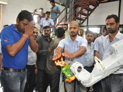 ‘सर्व उद्योग कारखाने यंत्रावर अवलंबून आहेत. मग कंपनीतील गणपतीची आरती यंत्रानेच करावी जेणेकरून बाप्पाची कृपा त्यावर होईल, अशी या संकल्पने मागची भूमिका या प्लँट प्रमुख शैलेश मुळूक यांनी स्पष्ट केली. आरती करणारा हा रोबोट पाहण्यासाठी वाळूज औद्यागिक वासहतील इतर कंपन्यांचे कर्मचारी आणि कामगार आवर्जून आरतीला येतात. रोजच्या रटाळ वेळापत्रकातून जरा वेगळे काही तरी अनुभवाची संधी त्यांना यातून मिळते. जग ‘ऑटोमेशन’कडे जात असताना धार्मिकविधीदेखील ‘टेक्नो सॅव्ही होणार असे दिसतेय.