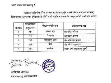 मनसेकडून पाच नावांची घोषणा, चौथ्या यादीत कोणत्या मतदारसंघात उतरवले उमेदवार?
