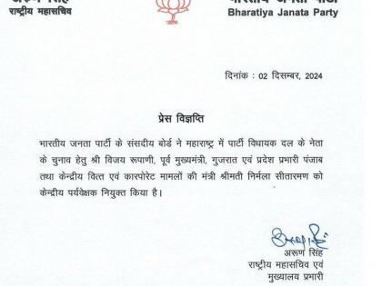 विधानसभा निवडणुकीत महायुतीला बहुमत मिळाल्यानंतरही राज्यात सत्तास्थापनेवरून निर्माण झालेला तिढा अद्याप सुटलेला नाही. दरम्यान, राज्याच्या नव्या मुख्यमंत्र्यांचा शपथविधी हा ५ डिसेंबर रोजी होणार असल्याचे भाजपाच्या नेत्यांकडून सांगण्यात येत आहे. तत्पूर्वी पक्षाच्या विधिमंडळ गटनेत्याची निवड करण्यासाठी भाजपाने हालचाली सुरू केल्या आहेत. विधिमंडळ गटनेत्याच्या निवडीसाठी होणाऱ्या बैठकीचे निरीक्षक म्हणून भाजपाकडून गुजरातचे माजी मुख्यमंत्री विजय रुपानी आणि केंद्रीय मंत्री निर्मला सीतारमन यांची नियुक्ती केली आहे.
