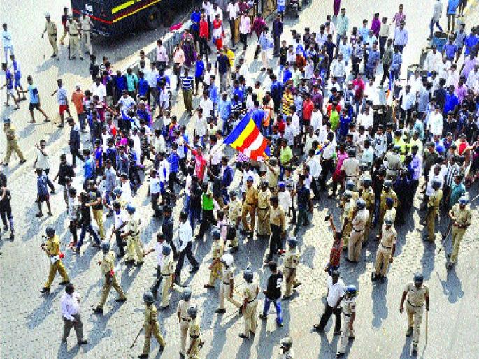 मुंबई - कोरेगाव-भीमा घटनेच्या निषेधार्थ महाराष्ट्रात पुकारण्यात आलेल्या बंदने मुंबईत हिंसक वळण घेतले. आंदोलकांनी दुकाने बंद करण्यासोबतच खासगी वाहनांची तोडफोड, जाळपोळ करीत पोलीस ठाण्यांवरही दगडफेक केली. आंदोलनकर्ते हिंसक झाल्याने मुंबईत तणावपूर्ण परिस्थिती निर्माण झाली होती. असे असले तरी मुंबई पोलिसांनी संयम राखत लाठीचार्ज न करताही जमाव नियंत्रित राहील याची काळजी घेतली. तणावपूर्ण परिस्थिती नियंत्रणात आणण्यासाठी पोलिसांनी २५० आंदोलनकर्त्यांना ताब्यात घेतले.