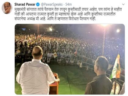 आमचे पैलवान तेल लावून तयार आहेत. मात्र समोर कोणीच विरोधक नाही, या मुख्यमंत्री देवेंद्र फडणवीसांच्या विधानाला राष्ट्रवादीचे अध्यक्ष शरद पवार यांनी उत्तर दिले. लढाई पैलवानांमध्ये होते, इतरांमध्ये नाही, अशा शब्दांमध्ये पवारांनी फडणवीसांवर प्रतिहल्ला चढवला होता. त्यानंतर 'आम्ही नटरंग नाही, त्यामुळे तसे हातवारे करीत नाही. ते आम्हाला शोभत नाही. पवारांची मानसिकता ढासळली असल्याने असे हातवारे करीत आहेत,'असं प्रतिउत्तर देखील देवेंद्र फडणवीस यांनी शरद पवारांना दिलं होतं. तसेच ''खरा पैलवान कोण? हे जनता 24 ऑक्टोबरला दाखवून देईल. तसेच आम्ही काही नटरंग नाही. त्यामुळे आम्ही हातवारे करत नाही. तसेच ते आम्हाला शोभतही नाही. सध्याच्या परिस्थितीमुळे शरद पवार यांची मानसिकता ढासळी आहे. त्यामुळे ते हातवारे करत आहेत, अशी टीका मुख्यमंत्र्यांनी केली होती.