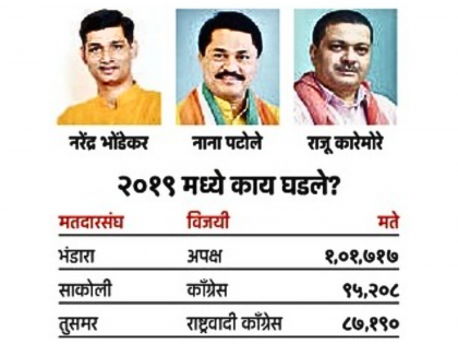 तुमसर मतदारसंघात महाविकास आघाडीचे चरण वाघमारे यांच्याविरुद्ध स्वपक्षातील ठाकचंद मुंगुसमारे यांची अपक्ष उमेदवारी आहे. भंडाऱ्यात नरेंद्र भोंडेकर आणि साकोलीत नाना पटोले यांच्याविरुद्ध बंडखोरी नाही. मात्र, नाना पटोले यांनी मांडलेली समिकरणेच त्यांची डोकेदुखी आहे. एकीकडे जातीय समीकरणाची जुळवाजुळव आणि दुसरीकडे खासदार प्रफुल्ल पटेल यांच्याशी सामना आहे.