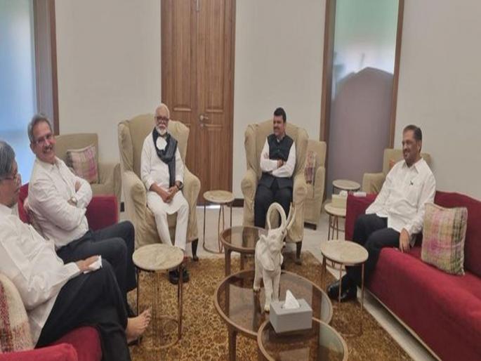 मुंबई - राज्यसभेच्या सहा जागांसाठी येत्या १० जून रोजी मतदान होणार आहे. या निवडणुकीत उमेदवारी अर्ज मागे घेण्याचा आज शेवटचा दिवस आहे. त्यामुळे ही निवडणूक बिनविरोध व्हावी यासाठी महाविकास आघाडीच्या नेत्यांनी सागर बंगल्यावर जात विरोधी पक्षनेते देवेंद्र फडणवीस आणि भाजपा प्रदेशाध्यक्ष चंद्रकांत पाटील यांची भेट घेतली. या बैठकीत महाविकास आघाडीकडून मंत्री छगन भुजबळ, सुनील केदार आणि खासदार अनिल देसाई उपस्थित होते. या बैठकीनंतर मविआ नेत्यांनी पत्रकारांशी संवाद साधला.