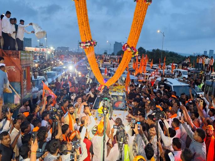 नवी मुंबईतील वाशी टोल नाक्यावर सकाळी सव्वासहा वाजता आंदोलक दाखल झाले. येथे घोषणांनी स्वागत करण्यात आले. घोषणांनी परिसर दणाणून गेला होता. हजारो आंदोलकांसोबत मनोज जरांगे पाटील मुंबईत दाखल झाले आहेत. वाशी टोलनाका ते वाशी प्लाझा पर्यंत आंदोलकांच्या वाहनांची रांग, घोषणा देत टोल नाका ओलांडला