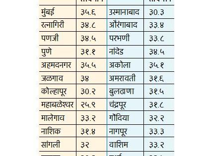 राज्यात सर्वाधिक कमाल तापमान मुंबईत, नाशिक १३.८ अंशांसह सर्वांत थंड