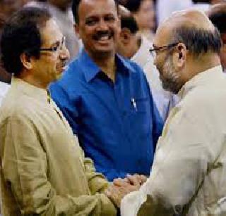 मुंबई, दि. ३१ - भाजपा आणि शिवसेनेमध्ये सुरु असलेली तणातणी शुक्रवारी झालेल्या शपथविधी सोहळ्यामुळे संपुष्टात येण्याची चिन्हे आहेत. शपथविधी सोहळ्यानंतर उद्धव ठाकरे आणि अमित शहा यांच्यात वानखेडे स्टेडियममध्ये बैठक झाल्याचे वृत्त असून या बैठकीत शिवसेनेच्या पाठिंब्याविषयी चर्चा झाल्याचे समजते.