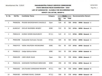 १३ जुलै ते १५ जुलै २०१९ मध्ये राज्यातील ४२० पदासाठी महाराष्ट्र लोकसेवा आयोगाने मुख्य परीक्षा घेतली होती, वर्षभराने हा परीक्षेचा आज निकाल जाहीर झाला आहे. तर यासाठी पूर्व परीक्षा १७ फेब्रुवारी २०१९ रोजी मुंबईसह इतर जिल्ह्यांमध्ये घेण्यात आली होती. मुख्य परीक्षेला ३ लाख ६० हजार ९९० पैकी ६ हजार ८२५ उमेदवार पात्र ठरले होते. लेखी परीक्षेच्या निकालाच्या आधारे १३२६ उमेदवार अर्हताप्राप्त ठरले आहेत.